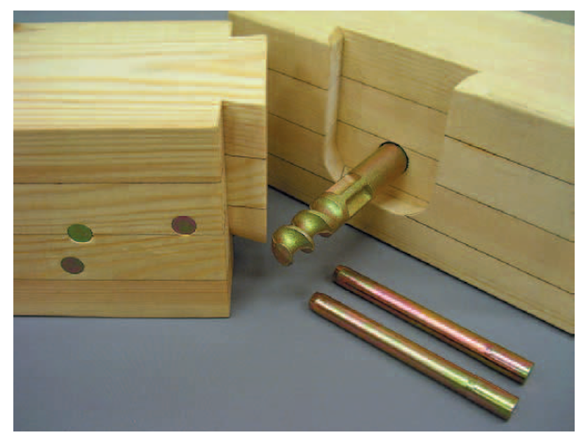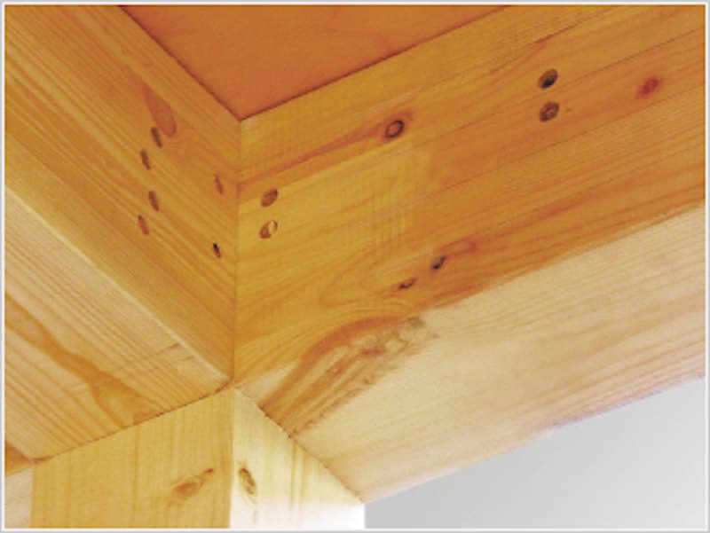 APS工法は大蟻仕口で木材同士がしっかり接合されている上、先端のネジリで木材を直接引き寄せて、中心に穴をあけているので、木痩せにも効果を発揮します。仕口部分にボルト・ナットを使用しないので、ガタつきがなく、床鳴りなどのアフターケアを最小限に抑えます。