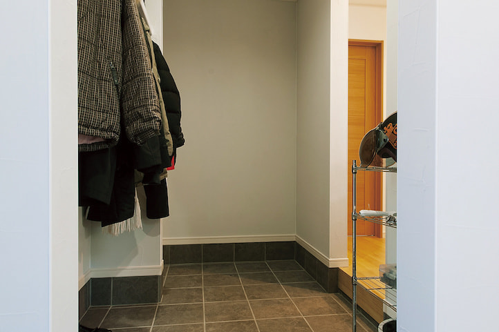 大きな土間空間は、子供が小さいうちは公園での遊び道具、子供が大きくなったら部活道具、また夫婦の趣味道具など沢山もものを収納しておける優れもの。
