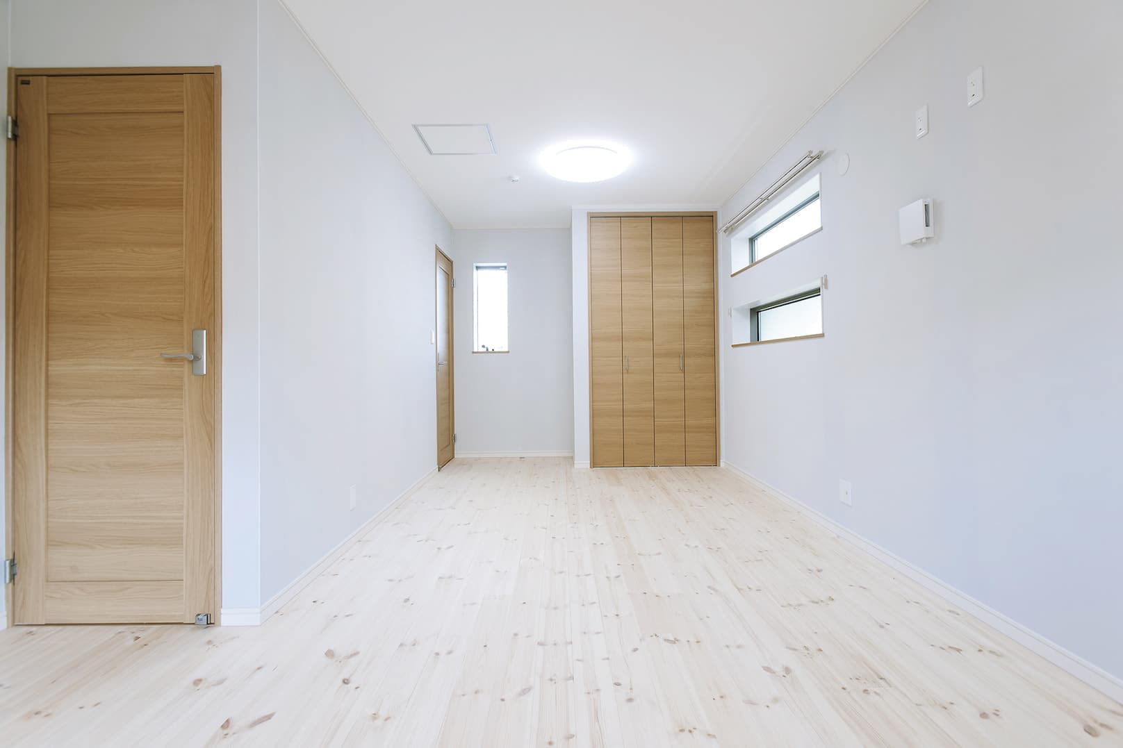 将来仕切る事ができる子供部屋にも無垢の床でたっぷり自然素材を使用している。