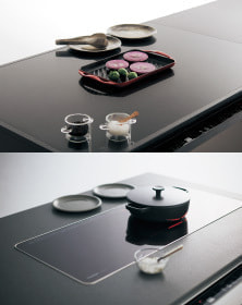 メニューに合わせて自由に使え、キッチン側もダイニング側も作業スペースも広々。さらに使いやすいIH。
