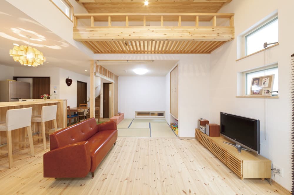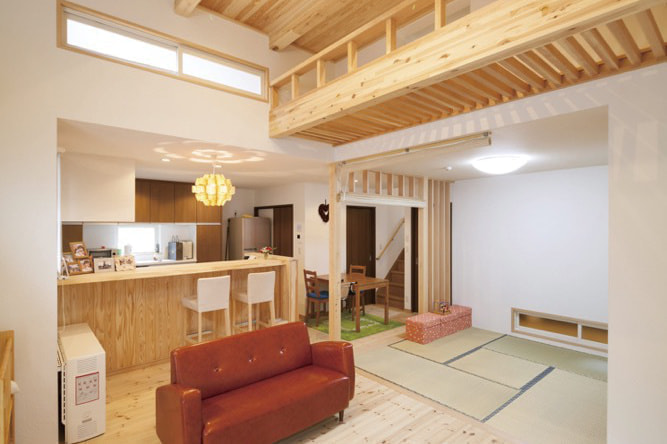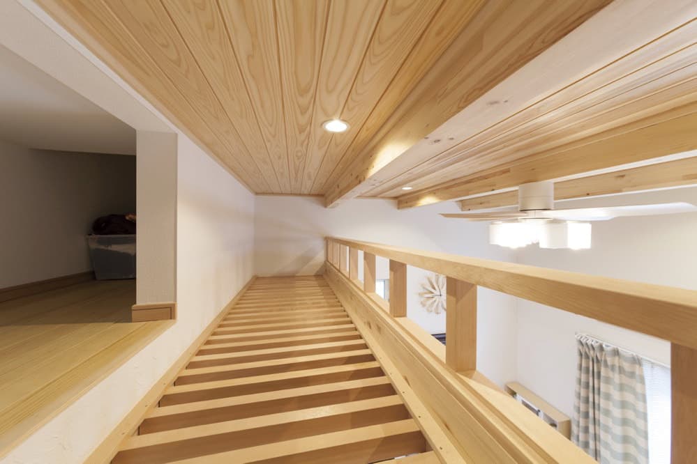 天然木で出来た手すりやロフト空間も大工さんの造作によるものです。