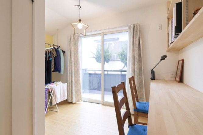 子供部屋にもバルコニーへの出口があると、子供達が自分で布団を干したり洗濯物を干したりと便利ですね!
