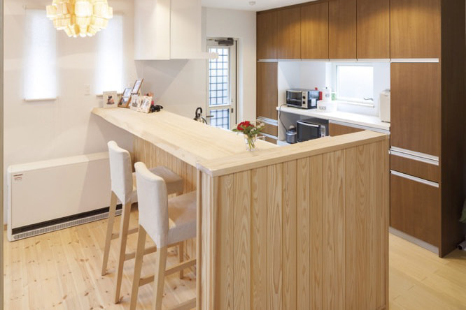 造作のカウンターキッチンも自然素材をたっぷり感じたい人にはオススメです!