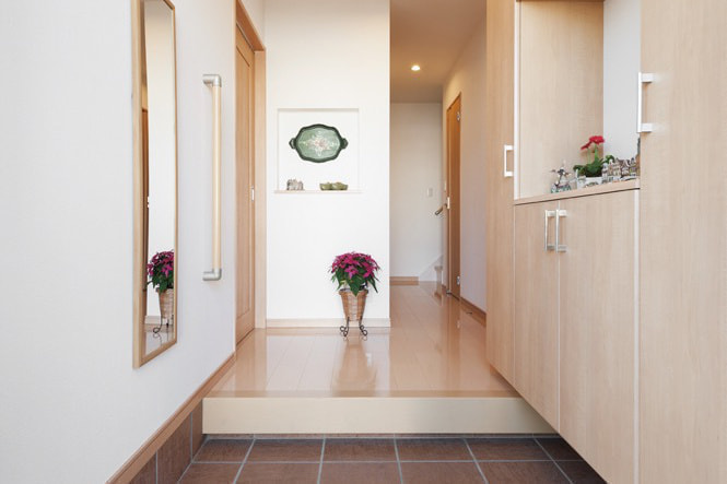 玄関スペースには沢山の収納場所をプランニングしているので、家族全員分の靴や季節的に使用しないものを収納しても余裕があります。