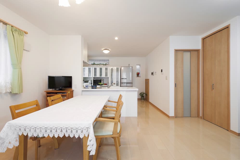 対面式キッチンによって、料理をしている時も家族と繋がりを感じる事ができます。食器の後片付けも楽チンです。