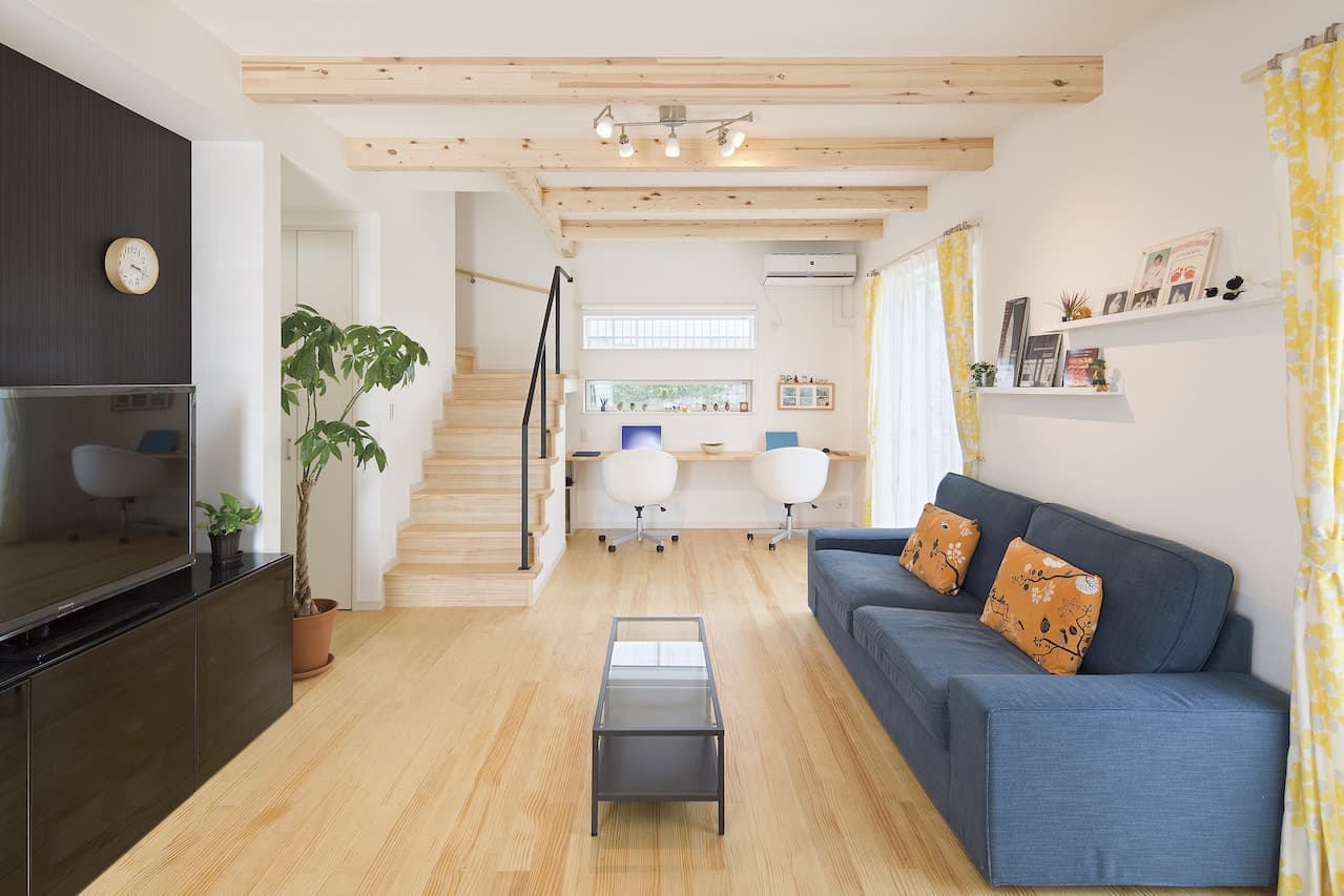 木の色合いを大事にした配色は、どのような家具をレイアウトしても似合うのでオススメの仕様となっています。