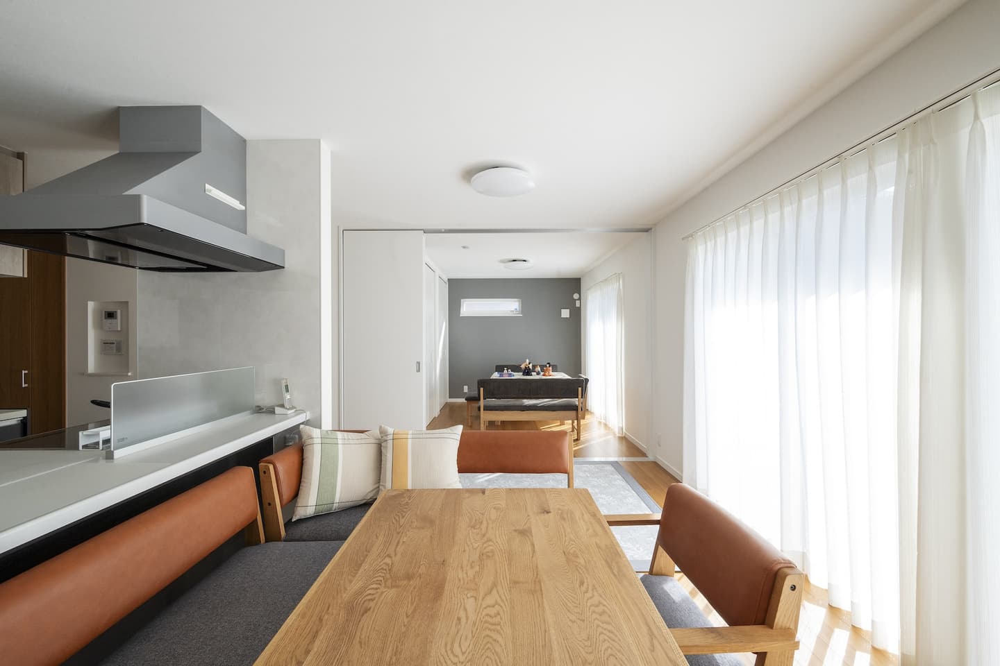 「雨の音が気にならないほど静かで驚きました。回遊動線で子どもも走り回れて、暮らしやすさを実感しています」とご夫妻。