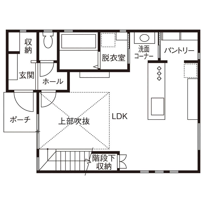 明るさと開放感をもたらす吹き抜け、アイアン手すりが映えるリビング階段、パントリー付きで使い勝手の良いキッチン、脱衣室と洗面スペースを分けた機能的な水まわりなど、暮らしやすさとデザイン性の両立を丁寧に形にしました。細部までこだわりを反映し、美しさと快適さを兼ね備えた住まいが完成しています。
