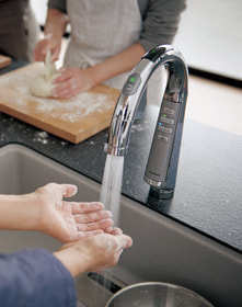 手をかざすだけで水の出し止めができるセンサー式で、無理なく自然に節水できます。