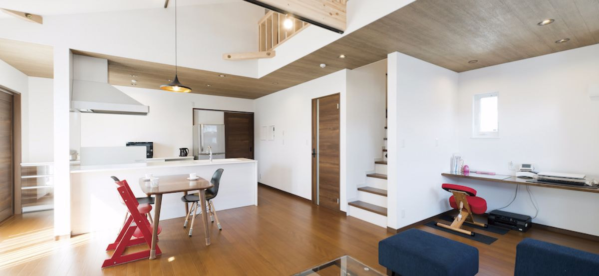 1つ目のポイントは、建物をすっぽり覆う断熱施工である事です。このことによって家が厚いコートを着ているような状態になり、冷たい外気温から家を守るとともに、窓からの暖かい陽射しで室内も暖まりやすくなります。