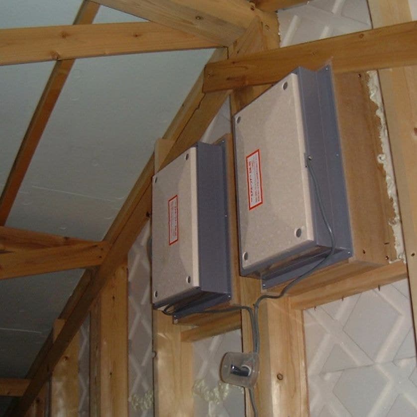 2つ目のポイントは、小屋裏に設けられた通気層。自然エネルギー活用住宅は、リモコン開閉式の窓「エアオープナー」を開けることで外気を導入し、夏の強い日差しにより小屋裏にこもった熱を外へ排出します。