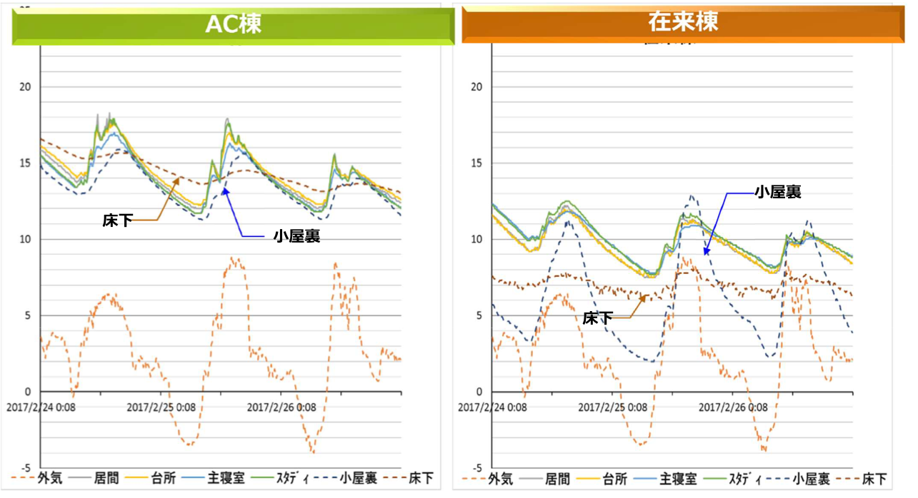 冬:2月の極寒時でも床下は約11度以上をキープ