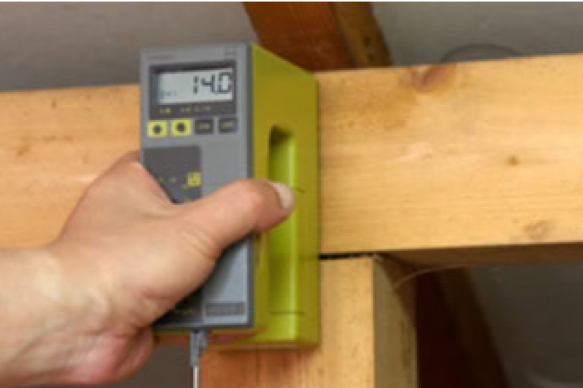 ご訪問した物件の含水率は、屋根裏の柱で14%、地面に近い玄関脇の柱で15.5%でいづれも非常に良好な状態で木材もきれいな状態で保たれています。床下も乾燥しており、じめじめした感じはまったくなく、木材には腐食や結露による汚れも見られず、昭和61年に造られた住宅でありながら、非常に健康的な状態でとっても築後20数年経過した住宅とは思われません。