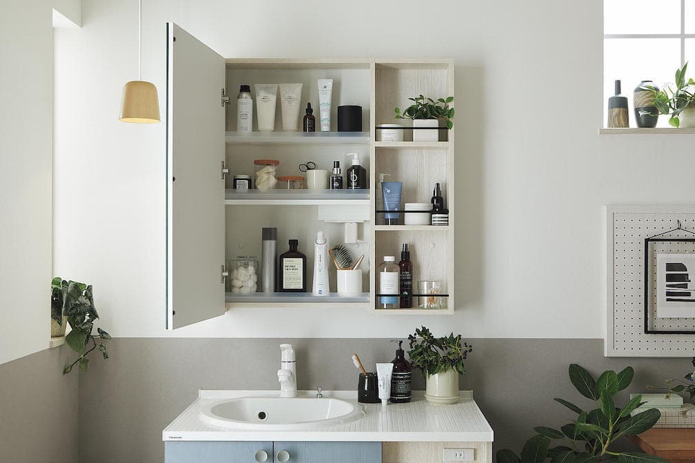 オープン棚付収納1面鏡